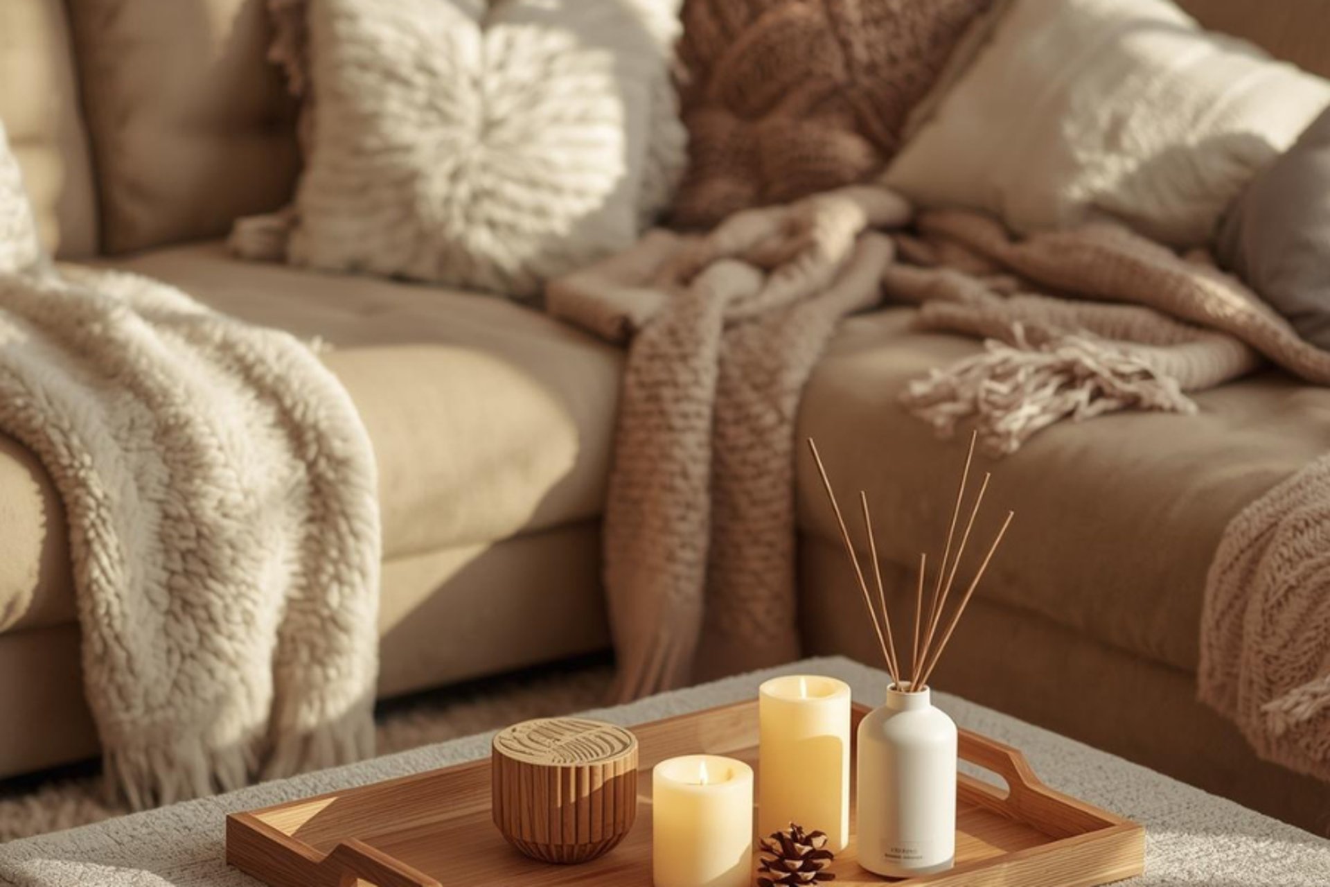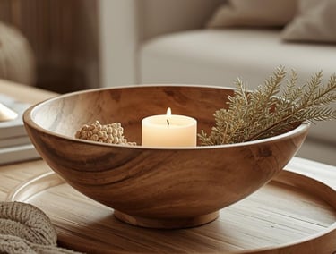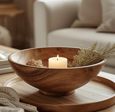 🕯️ 2. Natürlichkeit mit Holz, Wolle und Kerzen