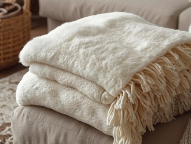 Dazu eine flauschige Decke aus Wolle oder Fleece und ein Teppich mit sanfter Struktur – schon wirkt das Wohnzimmer wie eine Kuscheloase.