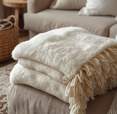 💡 Tipp: Kombiniere Textilien mit unterschiedlichen Strukturen – zum Beispiel grob gestrickte Decken mit glatten Samtkissen oder Leinen.