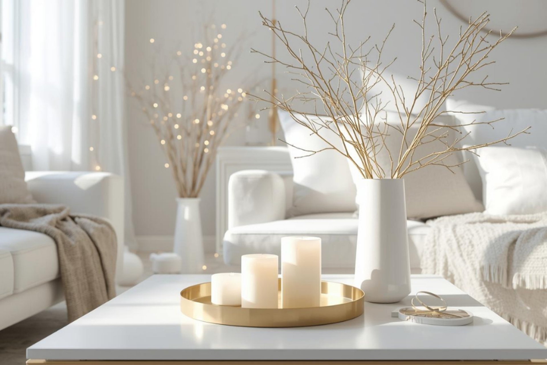 Minimalistische Winterdeko in Weiß & Gold – Stilvolle Ruhe für die kalte Jahreszeit